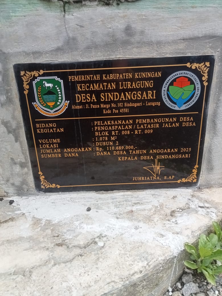 Pemertintah Desa Sindangsari Kecamatan Luragung Kabupaten Kuningan, telah melaksanakan Pembangunan Perbaikan Jalan Desa Dusun I sepanjang 272 meter dengan lebar 2.9 meter. Kegiatan pembangunan terseb…